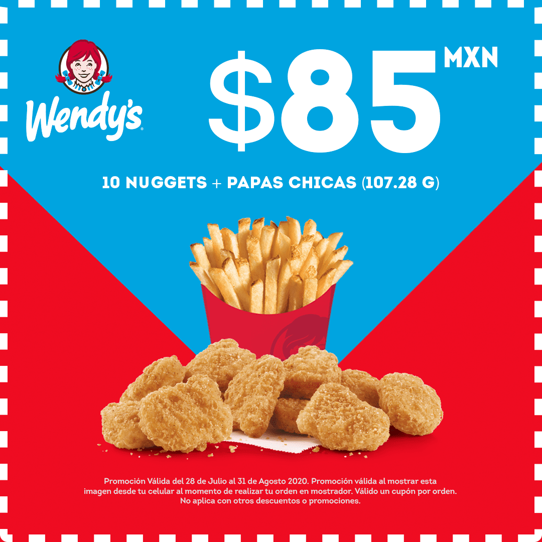 Les comparto la nueva Cuponera Digital de los restaurantes Wendy´s, que contiene sus ofertas válidas del 28 de julio al 31 de agosto de 2020 y que aplica es sus sucursales participantes de la CDMX y Estado de México; deberás mostrar el cupón en tu Smartphone al momento de realizar tu orden en el mostrador. Estas son las ofertas: