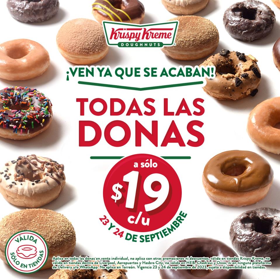 Krispy Kreme ha sacada nuevamente su promoción de donas a precio especial. Sólo por hoy sábado 23 y domingo 24 de septiembre, podrán encontrar todas las donas de cualquier sabor y relleno a sólo $19 pesos cada una.