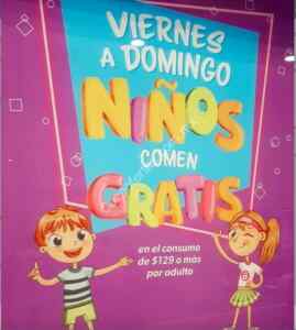 Acabo de ver que en los restaurantes El Portón los niños comen gratis de viernes a domingo con el consumo de $129 o más de un adulto. Pueden escoger entre el desayuno o la comida. En el desayuno pueden elegir un platillo seleccionado del menú infantil, un plato de fruta y una bebida de 245ml. La bebida puede ser un juego, un vaso de leche con chocolate o refresco. La comida incluye un consomé de pollo con arroz, un platillo seleccionado del menú infantil y una bebida, por ejemplo, limonada o agua del día.
