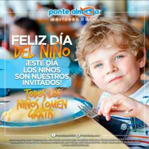 Exclusivamente el 30 de abril para celebrar el Día del Niño, en los restaurantes Ponte Almeja todos los niños comerán GRATIS; la promoción es válida en consumos por un mínimo de $280. Disponible en las sucursales Cuernavaca, Acapulco, Boulevares, Galería Atizapán, Forum Buenavista y Puerto Vallarta.