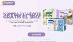 Hasta el día de hoy jueves 01 de julio de 2021 o hasta agotar existencias, estará la promoción de la tienda de autoservicio HEB, en la que te darán un 3×2 en todos los Pañales para Bebé (en la compra de 2, te llevas GRATIS el 3º de igual o menor precio); la promoción aplica solo en su tienda en línea heb.com.mx