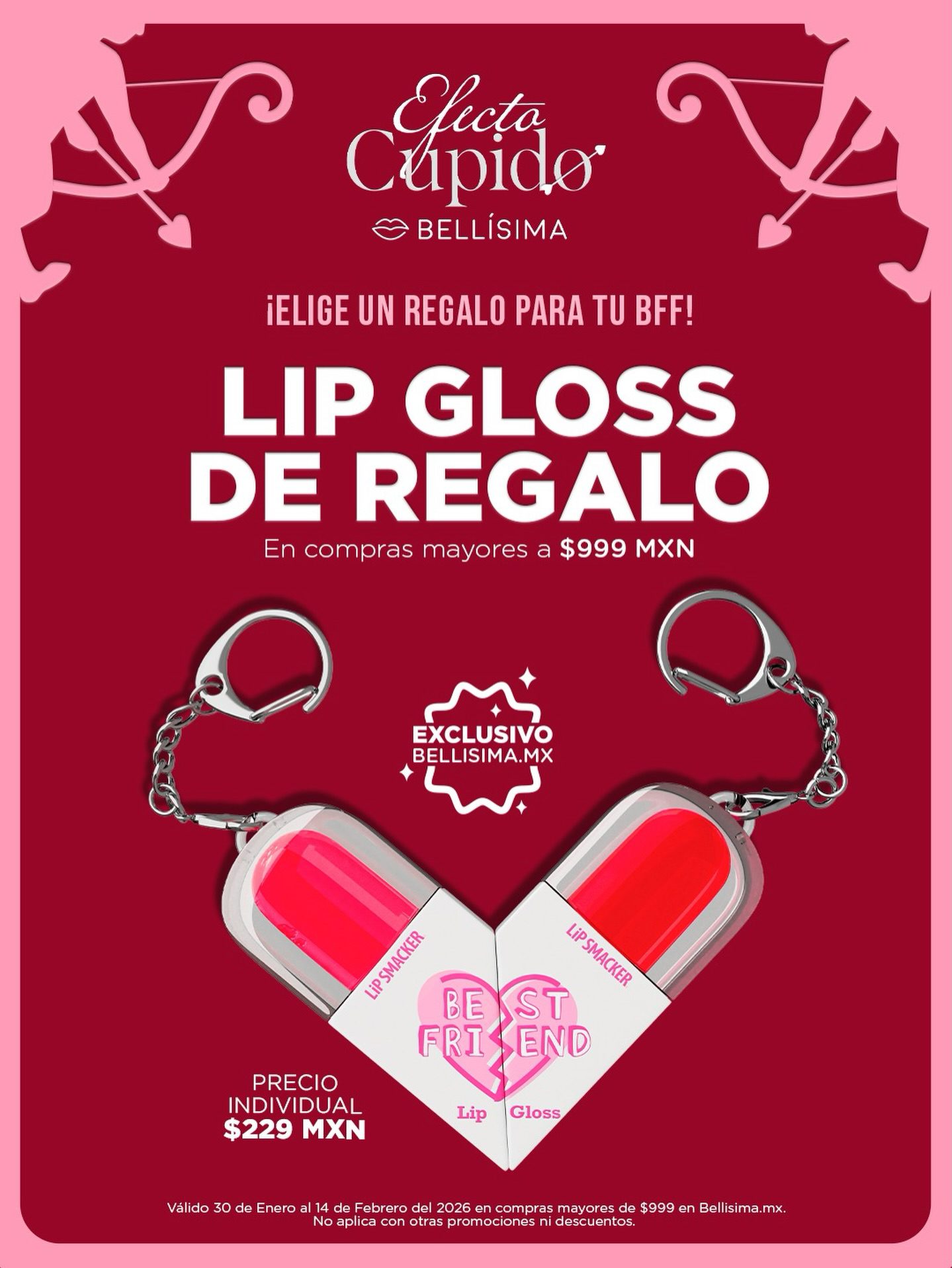 Ya está aquí la promoción Efecto Cupido por San Valentín de las tiendas de productos y accesorios de belleza Bellísima, en la que con tus compras superiores a $999.00, te llevarás GRATIS 1 Lip Gloss (con valor de $229.00); la promoción estará vigente del 30 de enero al 14 de febrero de 2026 y aplica exclusivamente en su tienda en línea https://bellisima.mx/.