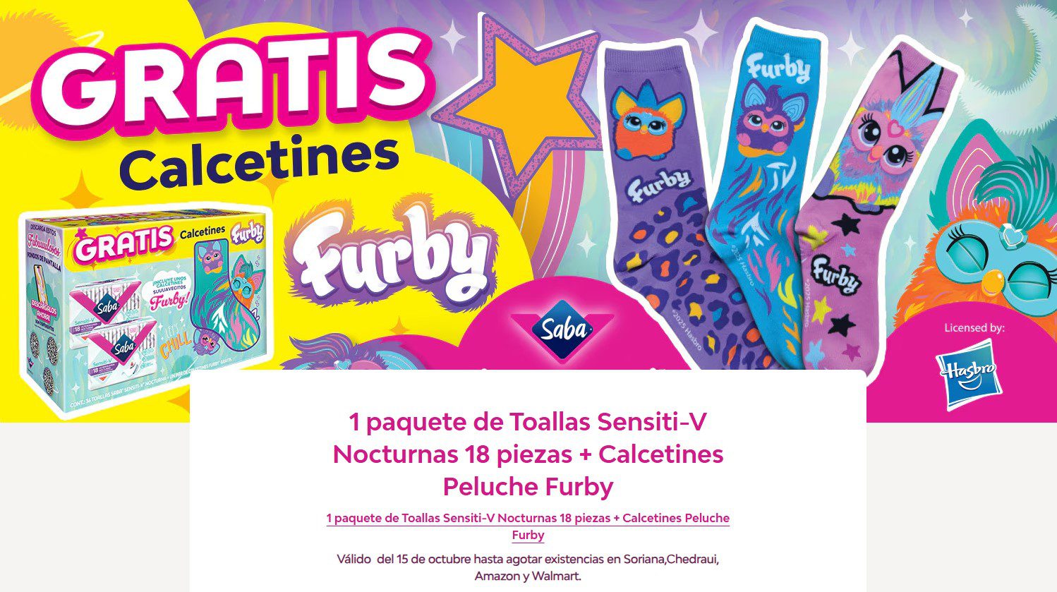 Acabo de darme cuenta que la marca de toallas femeninas Saba tienen un nuevo empaque promocional en el que te llevarás GRATIS 1 Calcetines Peluche Furby; cada empaque contiene 1 Paquete de Toallas Sensiti-V Nocturnas 18 piezas + 1 Calcetines Peluche Furby, estará vigente del 15 de octubre de 2025 hasta agotar existencias y lo puedes conseguir en Soriana, Chedraui, Amazon y Walmart.