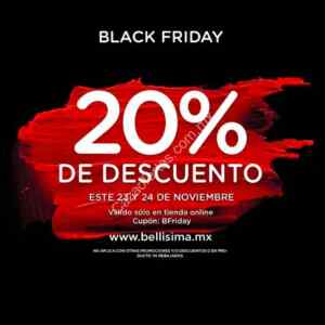 En la tienda online de Bellísima encontrarán 20% de descuento en el total de su compra usando el cupón BFriday. Esta promoción NO es válida en productos ya rebajados. Entren a la tienda y vean todos los productos que están disponibles. La vigencia es sólo por este viernes 23 y sábado 24 de noviembre del 2018.