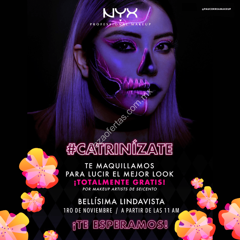 Sólo por el día de hoy viernes 01 de noviembre de 2019, en Bellísima con su promoción Catrinízate te maquillarán GRATIS por Makeup Artists de Seicento; la promoción será válida únicamente en su sucursal Lindavista a partir de las 11.00 horas; creo que deberíamos ir a buena hora para disfrutar de esta promoción gratuita.