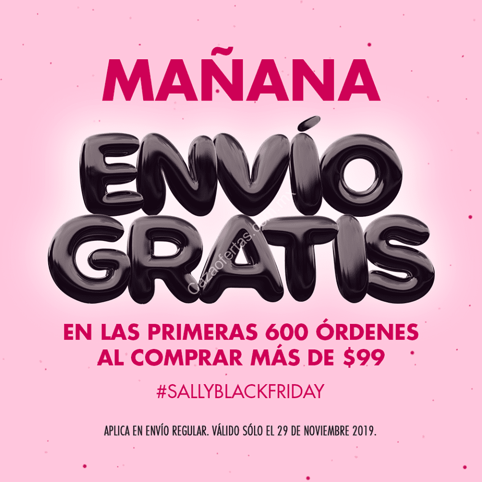 Sólo por el día de hoy viernes 29 de noviembre de 2019, en las tiendas de productos de belleza y Cosméticos Sally Beauty por la promoción del Black Friday 2019, te darán e Envío GRATIS en tus compras por $99.00 o más; la promoción es exclusiva para su tienda en línea sallymexico.com y aplica en las primeras 600 órdenes (en envío regular).