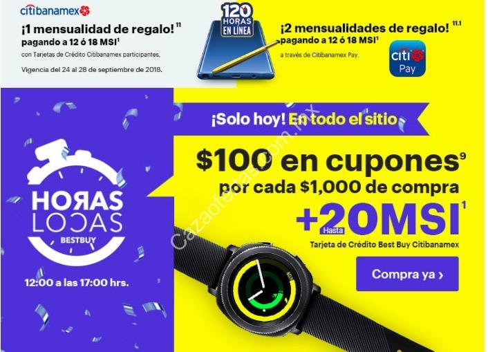 Ya está la promoción de Horas Locas en Best Buy. Están dando $100 en cupones por cada $1,000 de compra pagando con Tarjeta Best Buy. Además hay 20 Meses Sin Intereses. Esta promoción estará disponible de las 12:00 a las 17:00 horas. Aplica directo en la tienda online, así que les comparto la liga: https://www.bestbuy.com.mx