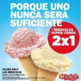 Todos los miércoles disfruta de la promoción de Carl's Jr. de 2x1 en Super Conos. Vigencia: 30 de septiembre de 2016.