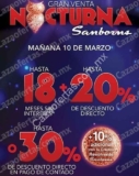 Este 31 de marzo y 1 de abril habrá Venta Nocturna Sanborns en todas las sucursales con las siguientes promociones: - Hasta 30% de descuento en pago de ...