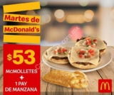 Para el Martes de McDonalds de mañana 26 de marzo estos son los cupones para desayunos y comidas: – 1 orden de McMolletes + 1 Pay de Manzana por solo $53 ...