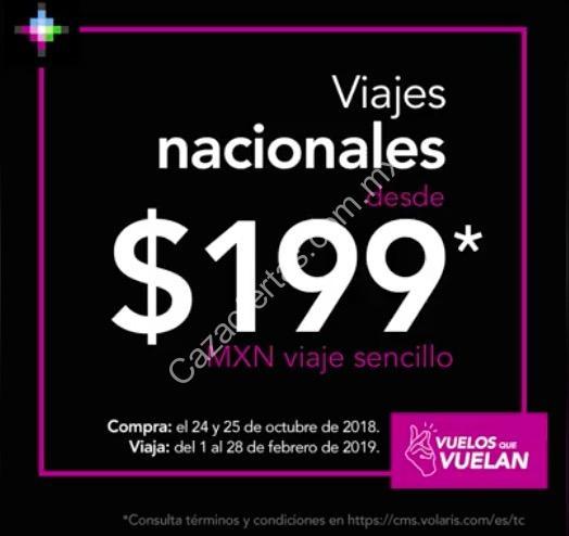 En la aerolínea Volaris está la promoción Vuelos que Vuelan. Pueden comprar viajes nacionales desde $199 pesos e internacionales desde $39 dólares. Para ambos casos el viaje es sencillo y en tarifa limpia. La vigencia para comprar los boletos es sólo por este miércoles 24 y jueves 25 de octubre para que viajen del 1 al 28 de febrero del 2019.