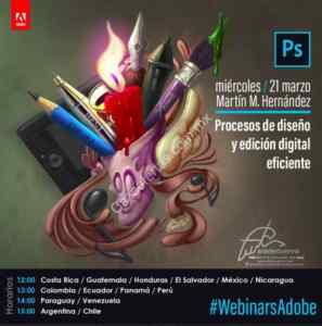 A los interesados en diseño y programas de edición, les comento que el día de hoy habrá clase gratis del Webinar de Adobe sobre «Procesos de diseño y edición digital eficiente». Sólo necesitan registrarse y estar presentes en la página https://lat.adobeconnect.com/latamlives/, a las 12:00pm. Esta clase se dará sólo este miércoles 21 de marzo del 2018.